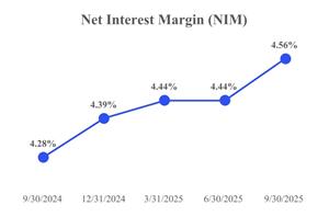 Our net interest margin was 4.56% and 4.44% for the three-month periods ended September 30, 2025 and June 30, 2025, respectively. The yield on loans was 7.39% and 7.36% for the three months ended September 30, 2025 and June 30, 2025, respectively, as average loans increased from $15.06 billion to $15.22 billion. Additionally, the rate on interest bearing deposits decreased to 2.62% as of September 30, 2025, from 2.64% as of June 30, 2025, while average interest-bearing deposits decreased from $13.43 billion to $13.32 billion.